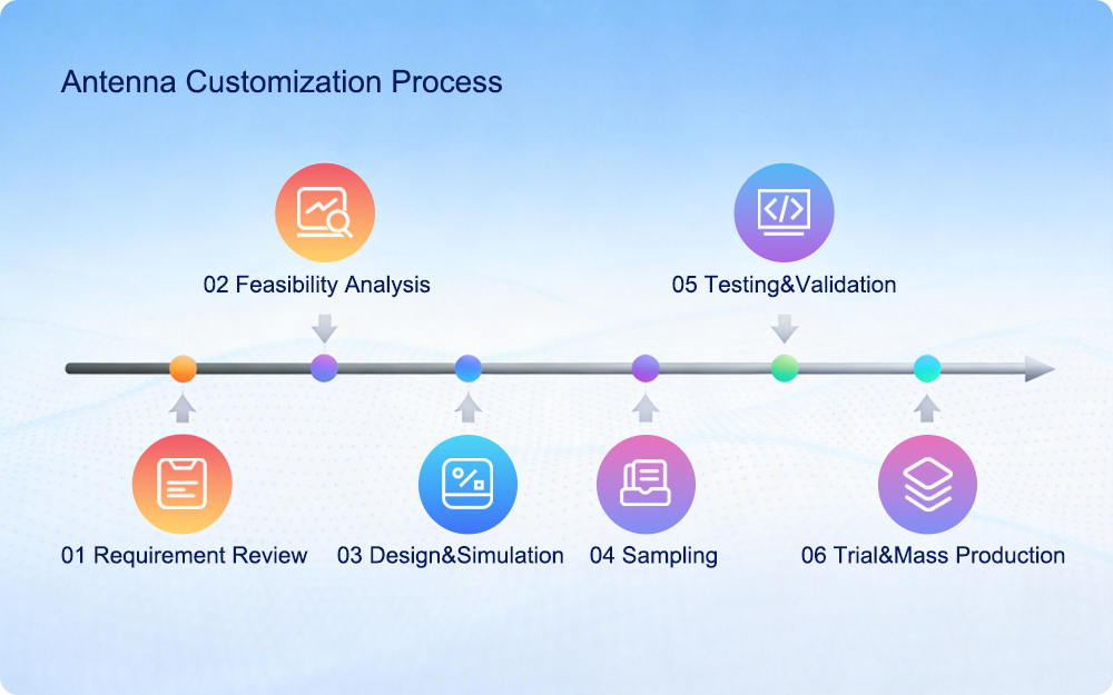 We do more than manufacture antennas. We provide integrated support from requirement review and solution design to simulation, tuning, prototype validation, and mass production.